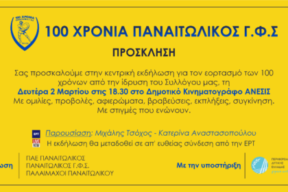 Από τις 9 Μαρτίου 1926 μέχρι και σήμερα! 100 χρόνια Παναιτωλικός Γυμναστικός Φιλεκπαιδευτικός Σύλλογος, 100 χρόνια ιστορίας! Οι σελίδες της «ξεδιπλώνονται» μέσα από…