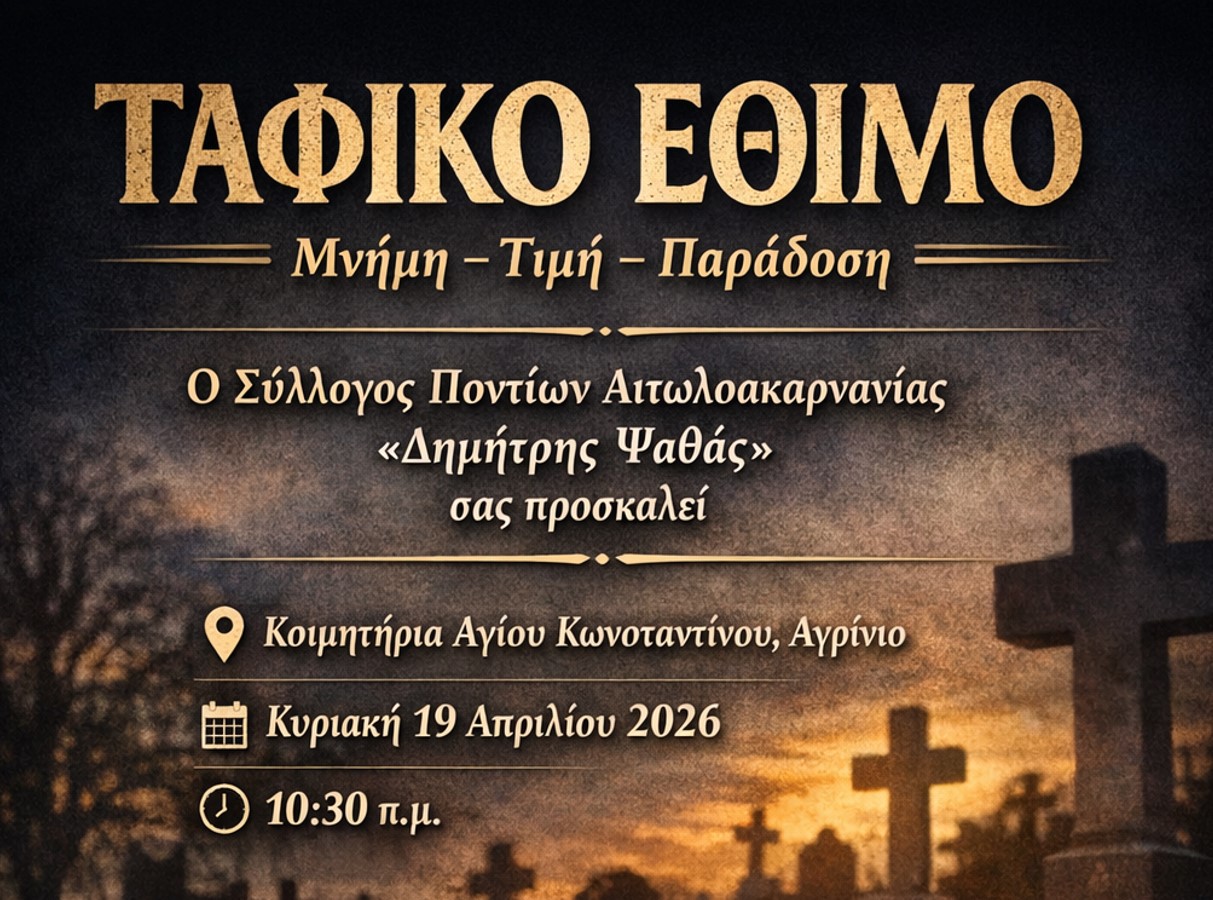 Η εκδήλωση θα πραγματοποιηθεί την Κυριακή 19 Απριλίου 2026, στα κοιμητήρια του Αγίου Κωνσταντίνου, Αγρίνιο ώρα (10:30) «με σκοπό να αποδώσουμε φόρο τιμής στους προγόνους μας, διατηρώντας ζωντανά τα ήθη και τα έθιμα του τόπου μας», όπως επισημαίνει η ανακοίνωση.