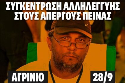 Συγκέντρωση αλληλεγγύης θα πραγματοποιηθεί και στο Αγρίνιο για απεργό πείνας Πάνο Ρούτσι. Ο Πάνος Ρούτσι βρίσκεται σε απεργία πείνας…