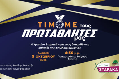 Την Κυριακή 5 Οκτωβρίου 2025, στις 18:30, στο Παπαστράτειο Μέγαρο Αγρινίου, η βουλευτής Αιτωλοακαρνανίας και Υπεύθυνη του Κοινοβουλευτικού Τομέα Αθλητισμού…