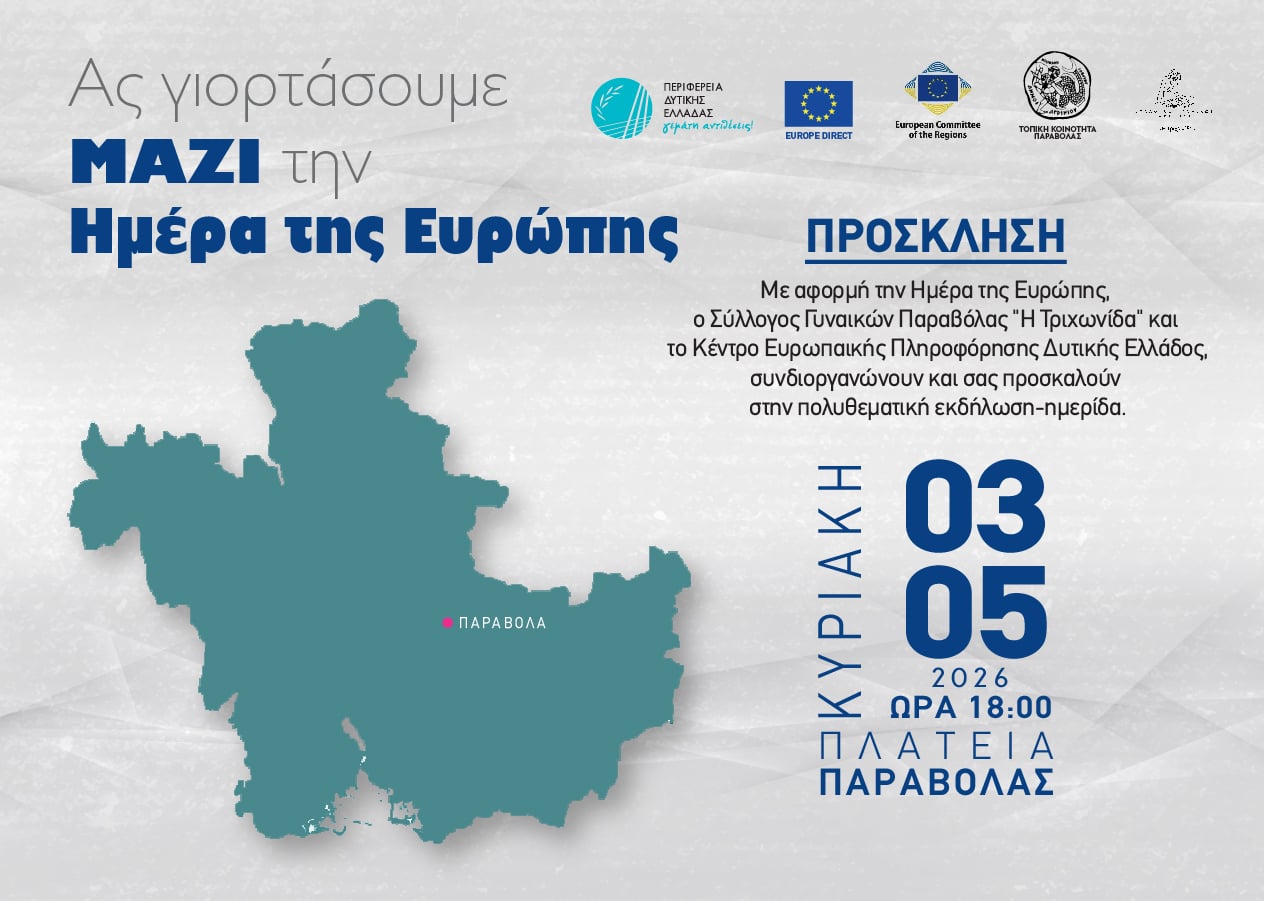 Με αφορμή τον εορτασμό της Ημέρας της Ευρώπης, ο Σύλλογος Γυναικών Παραβόλας Δήμου Αγρινίου διοργανώνει μια ξεχωριστή εκδήλωση που συνδέει την τοπική παράδοση με την ευρωπαϊκή ταυτότητα. Την Κυριακή 3 Μαΐου 2026, και ώρα 18:00, η κεντρική πλατεία της Παραβόλας θα μεταμορφωθεί σε έναν ζωντανό χώρο γαστρονομίας και πολιτισμού.